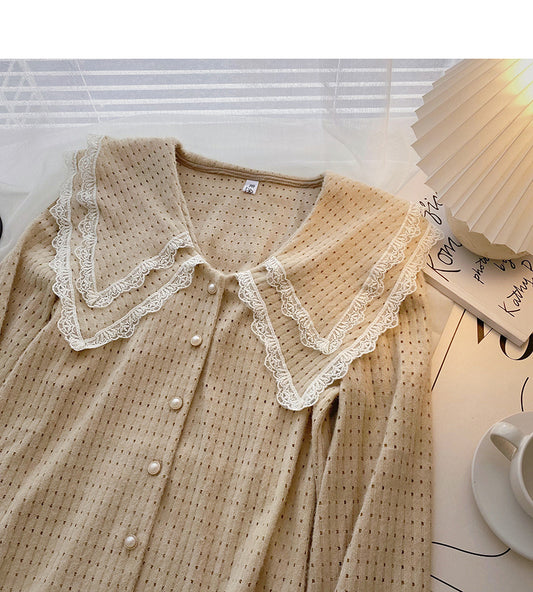 Französisches Spitzenhemd Langarm Pullover Top 6343