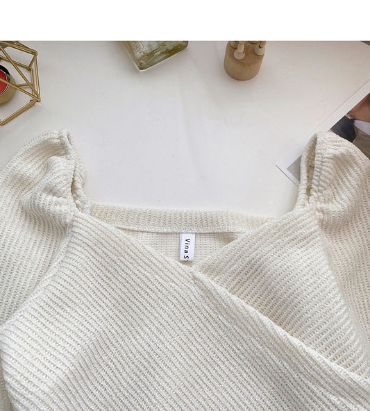Neues koreanisches Kurzarm-Oberteil mit V-Ausschnitt im Kreuzstil 6346