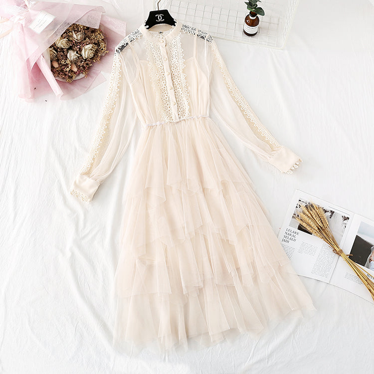 Französisches Vintage-Spitzenrock-Set mit Hosenträgern und Boden 3968