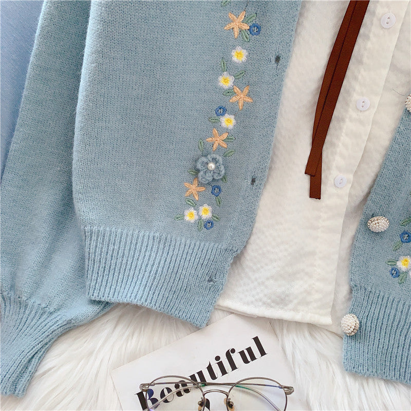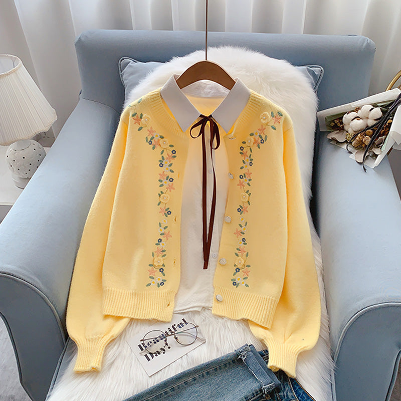 Gentle Fengsen Department Pullovermantel mit handgestickten Blumen 5053
