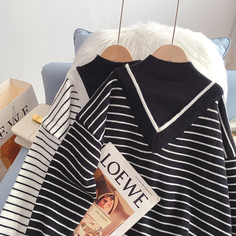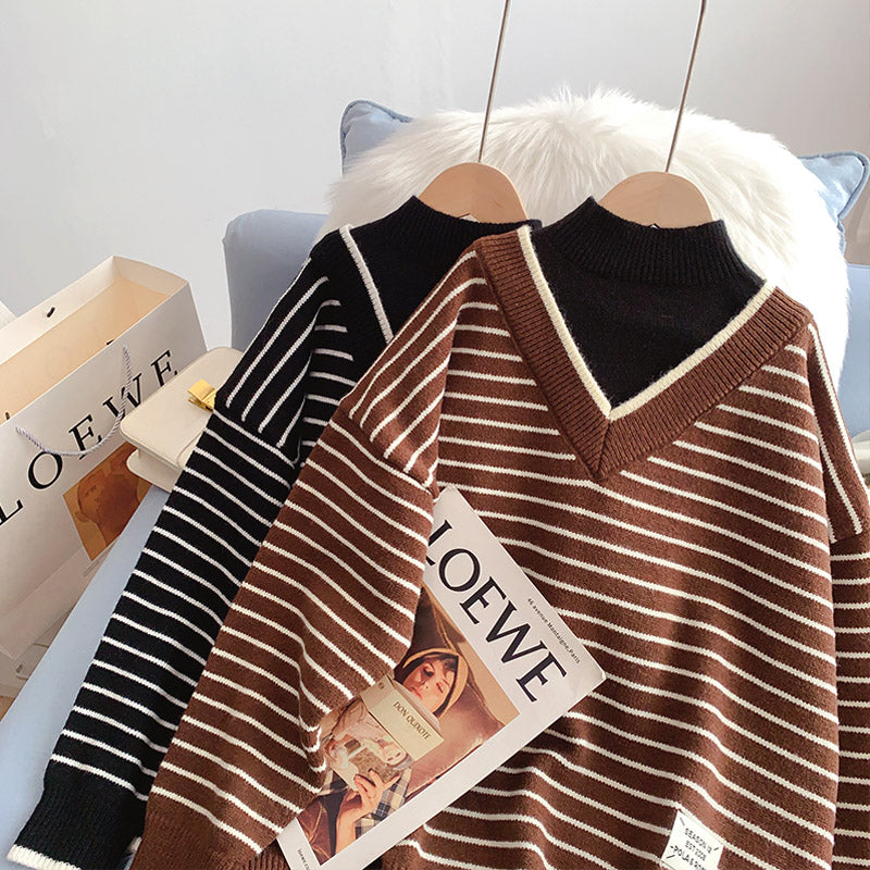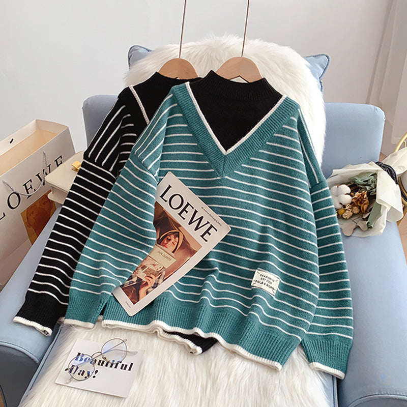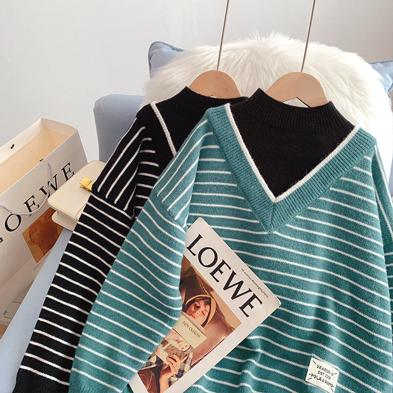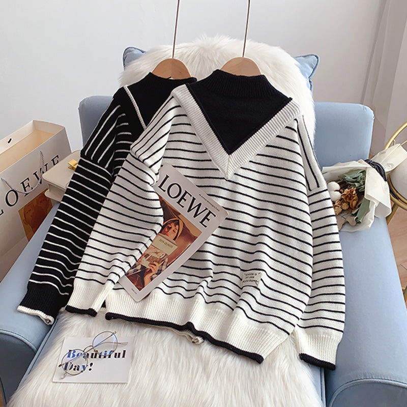 Halbhoher Kragen, gefälschte zwei Pullover, fauler Windstreifenpullover 5013