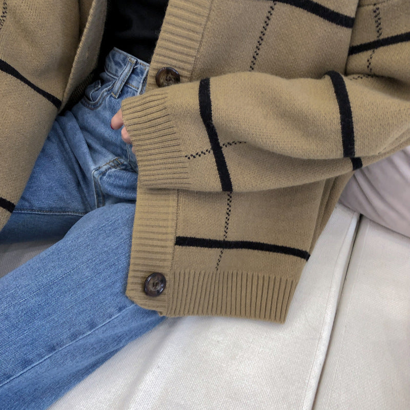 Harajuku Pullover Cardigan Karierte Strickjacke 5268