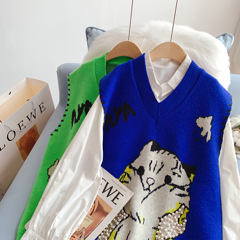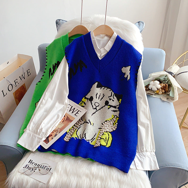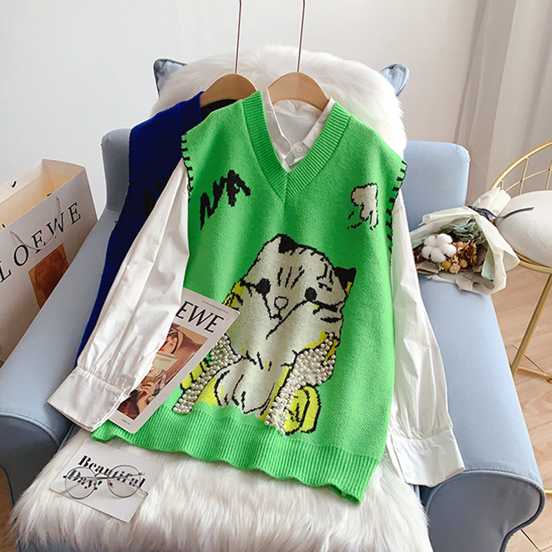 Schwere Industrie-Nagelperle mit V-Ausschnitt, gestrickte Weste, Weste, Mantel 5255