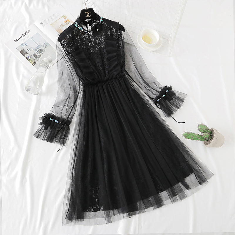Dreidimensionales Blumenspitzenkleid aus schwerer Industrie im französischen Stil 4325