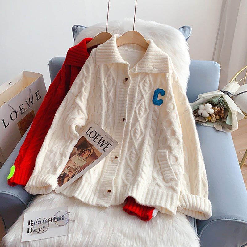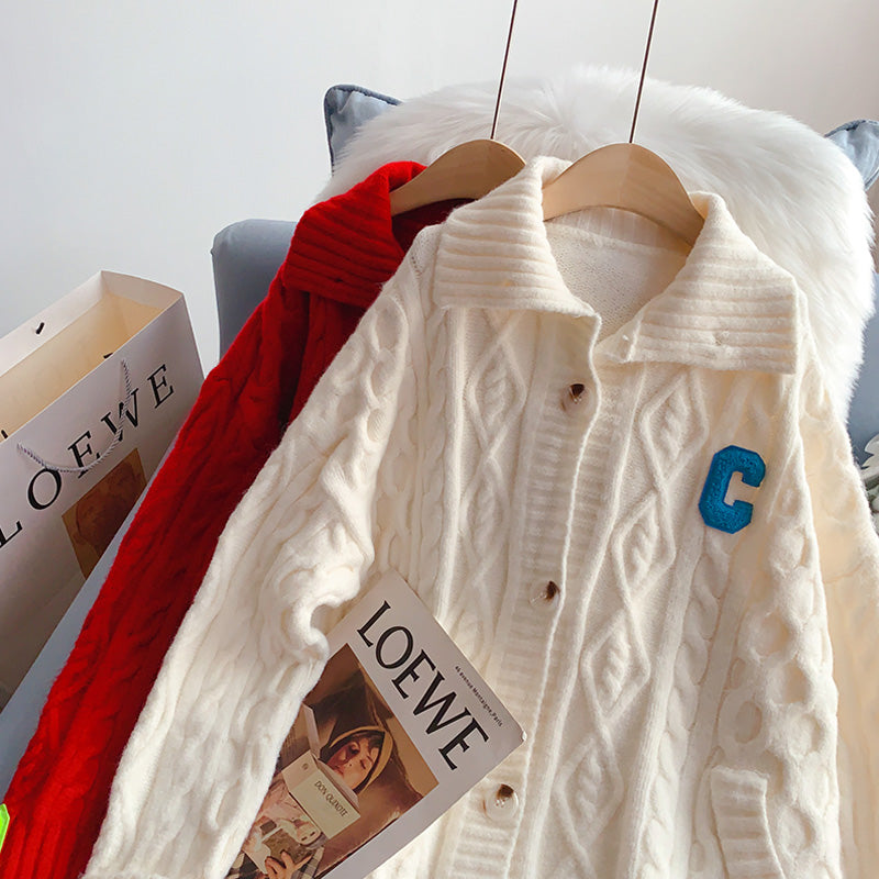 Vintage Twist roter Pullover Mantel Strickjacke 5263
