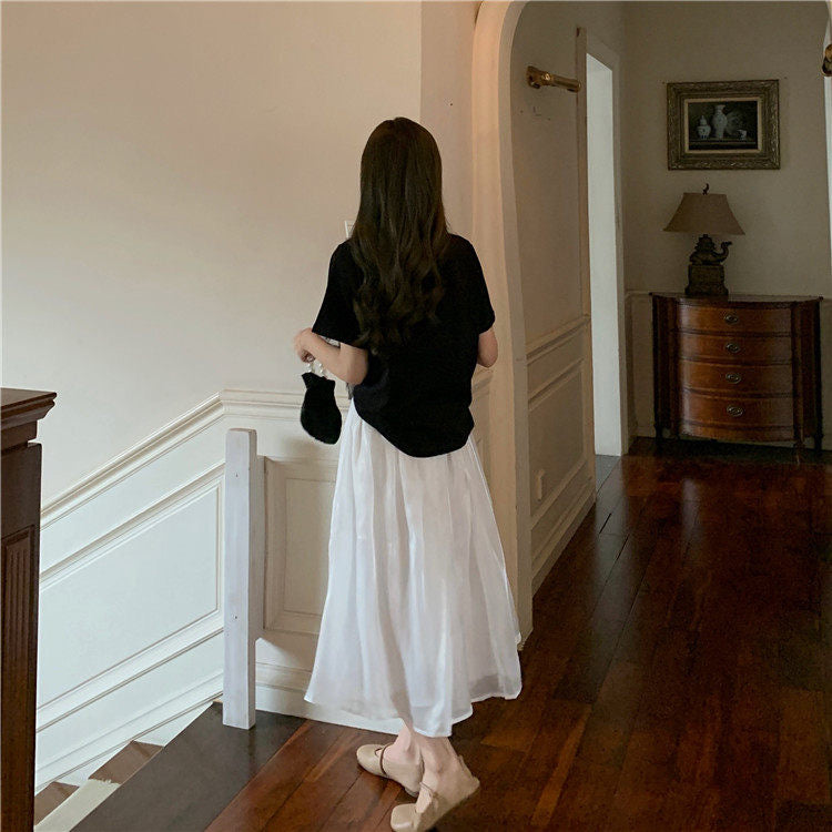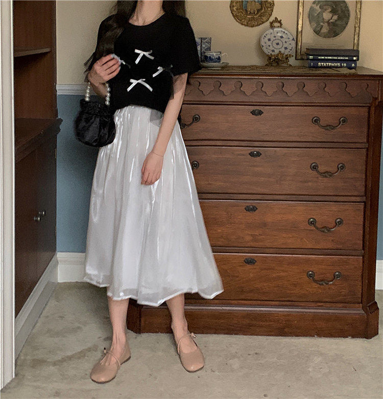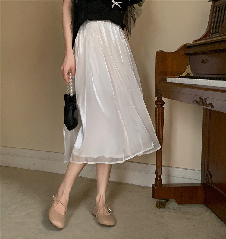 Weißer Midirock, Rock in A-Linie mit hoher Taille 3648