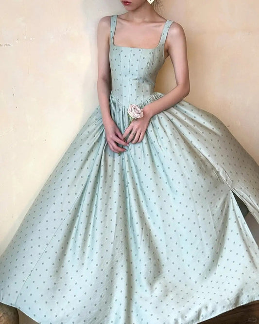 girlhomeshops--Green Simple And Elegant Polka Dot Long Formal Prom Dress gh5608