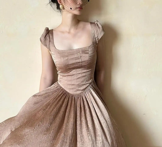 girlhomeshops--Beige Simple Mid-Length/Short Princess Elegant Formal Homecoming Dress Hoco Dress gh5603