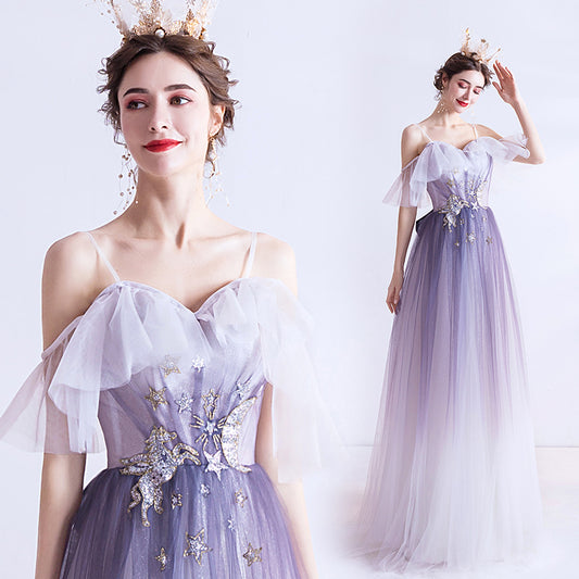 Stylish blue gradient long A line prom dress blue evening dress 8772