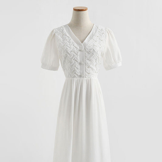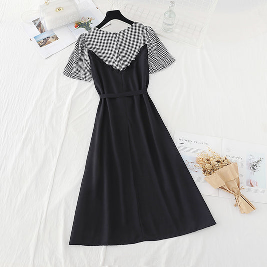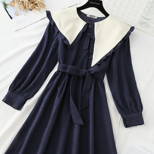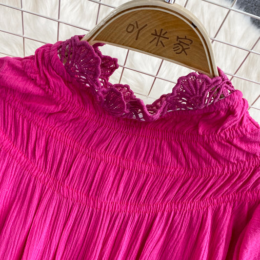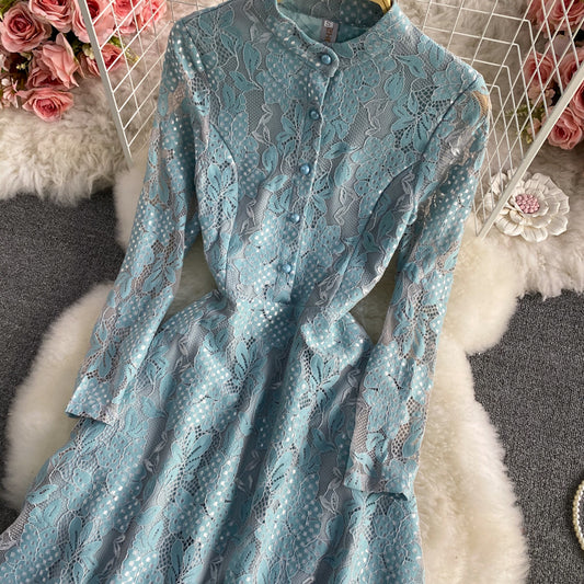 French court lantern sleeve design lace stitching stand collar dress 3377