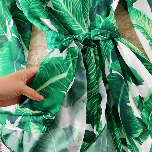 French fairy skirt super fairy rose printing gentle wind split skirt 3745