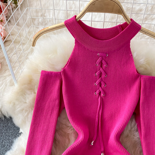 Han Fan lace up stand neck slim bottomed sweater 1906