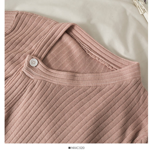 Han Fan irregular single breasted V-Neck long sleeve sweater female 2038