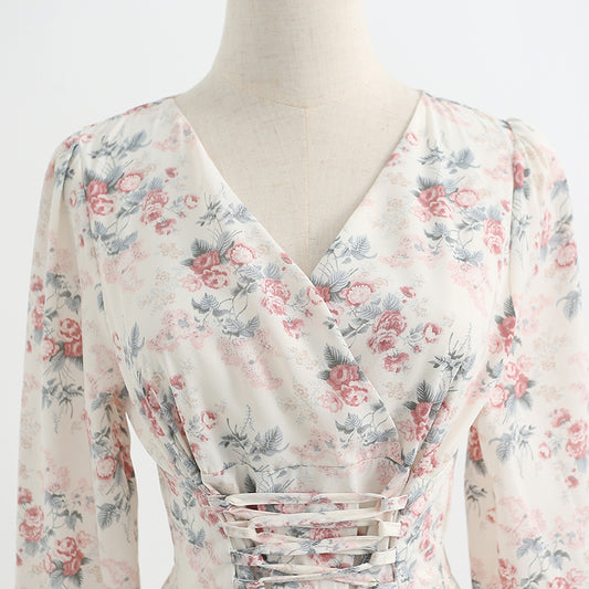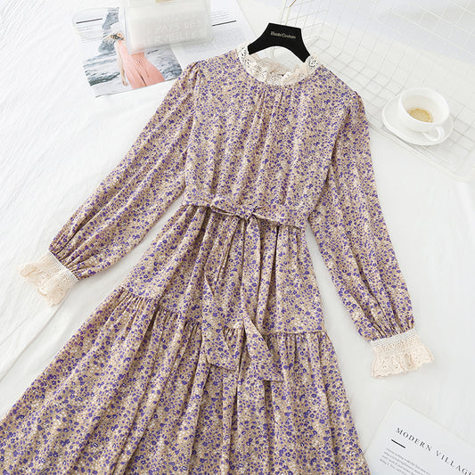 Women's floral dress thin chiffon skirt bandage gentle wind tea break skirt 2179