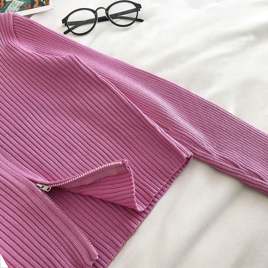 Women's fashion Lapel long sleeve short open navel sweater 6544