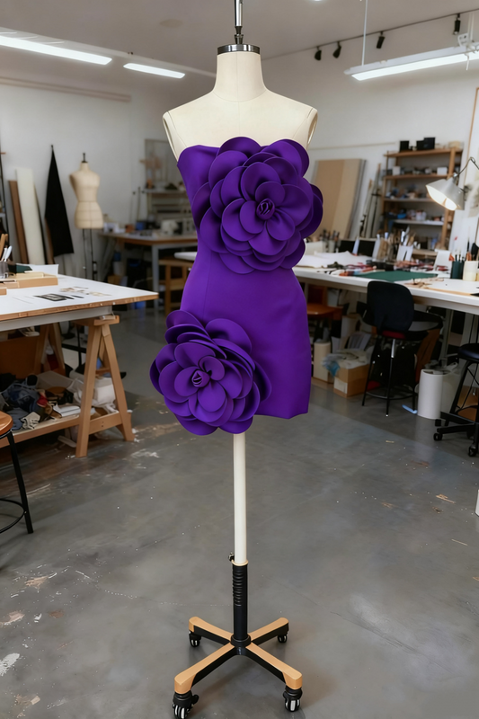 girlhomeshops-Blue Satin Back-To-School Dress, Short Birthday Dress gh6233