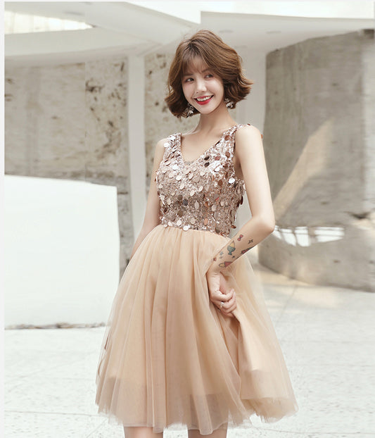 Cute v neck tulle lace short prom dress cocktail dress 8310
