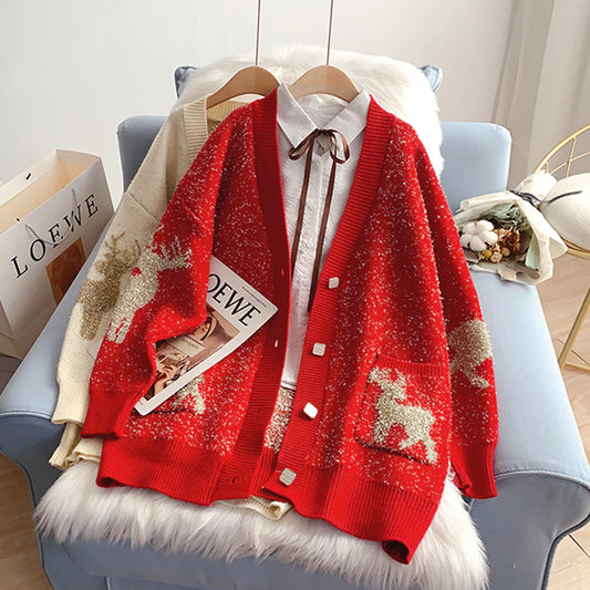 Korean slim warm long sleeve V-Neck Sweater Coat 5852