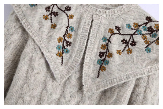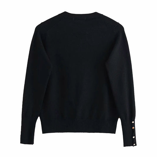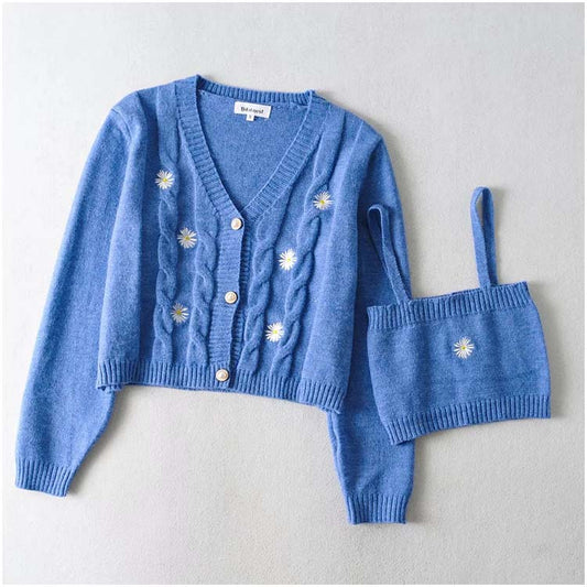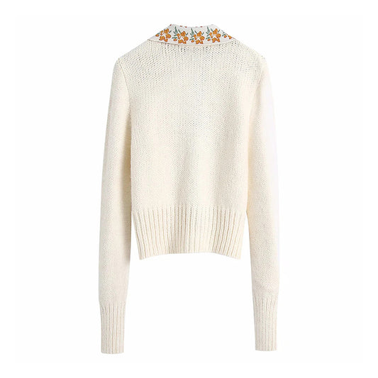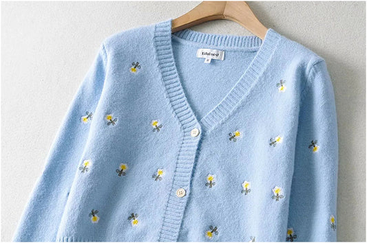 Lazy embroidery button cardigan V-neck versatile top coat sweater 7213
