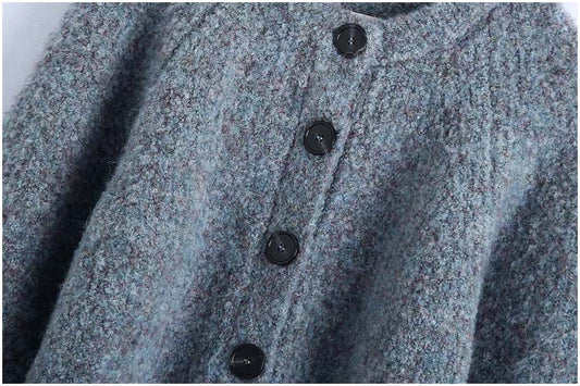Single breasted loose foreign style retro lazy sweater coat 7218