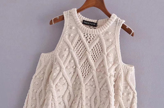 New fashion temperament hollow sweater off shoulder crew neck sweater 7205