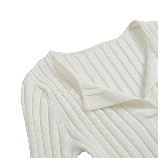 Retro spice girl small V-neck slim pit strip sweater 7204