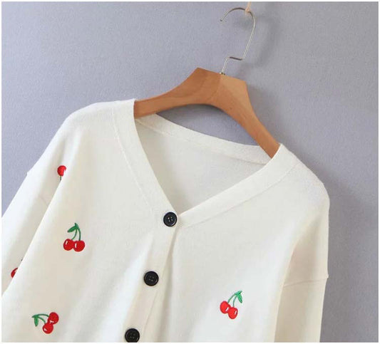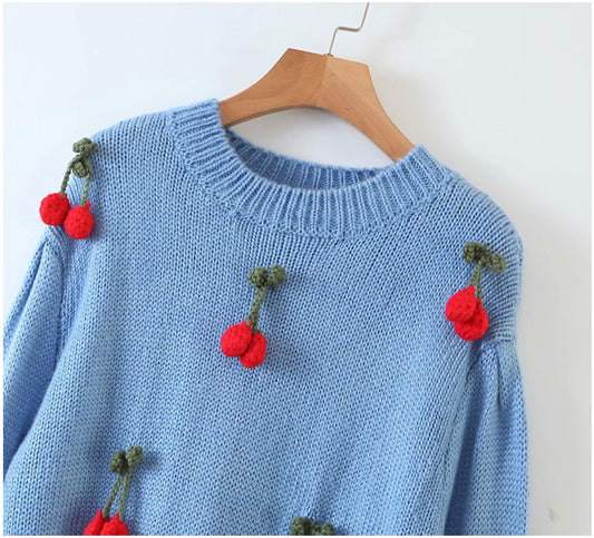 Round neck cherry sweater bottomed sweater loose fashion Pullover Sweater 7208