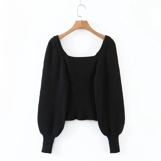 Lantern Sleeve exposed collarbone sweater sweater sweater top 7214