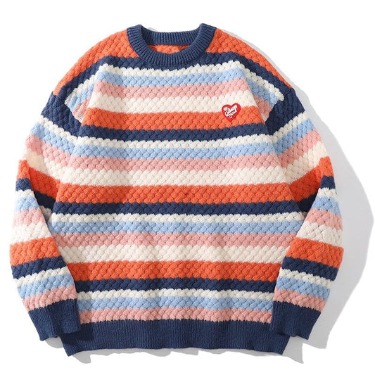 Strawberry jacquard mohair sweater loose round neck top 7743
