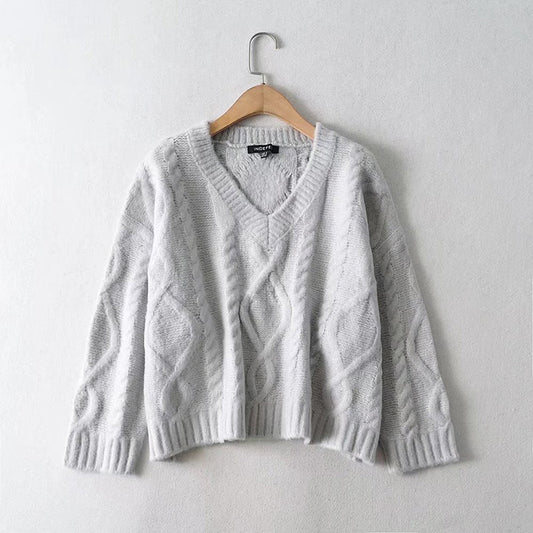 New style temperament versatile V-neck loose casual octet knitted sweater 7759