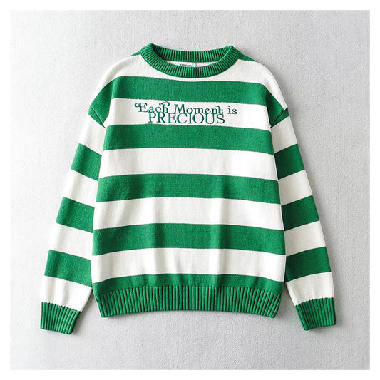 Versatile lazy embroidered letter long sleeved sweater 7741