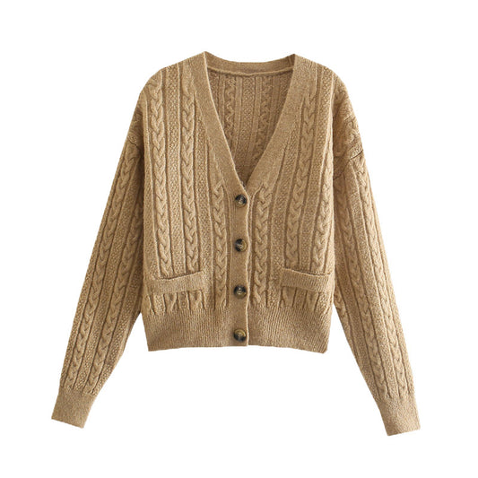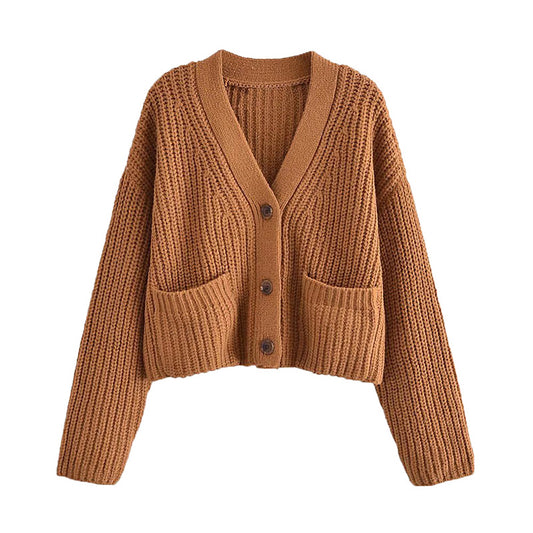 Versatile V-neck pocket sweater sweater sweater jacket 7758