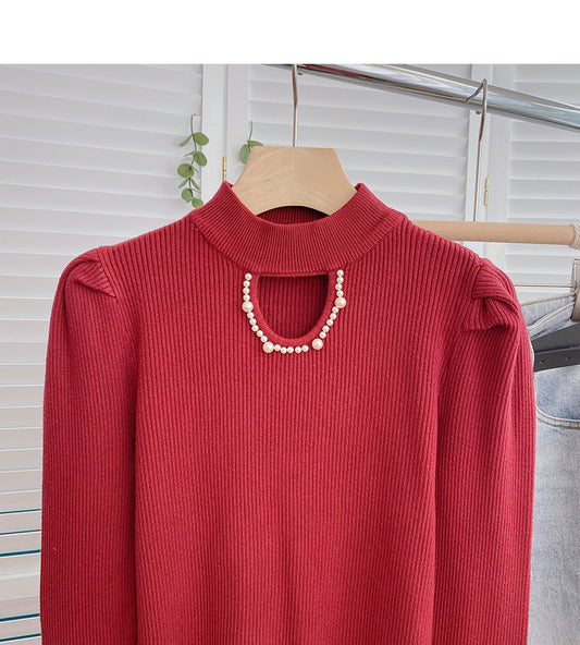 High neck Pullover Sweater design sense two long sleeved bottomed tops 6608