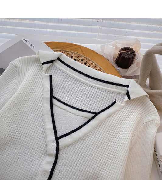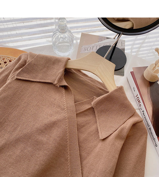 Slim design personalized Lapel long sleeve Pullover Top 6604