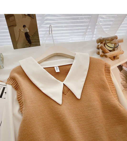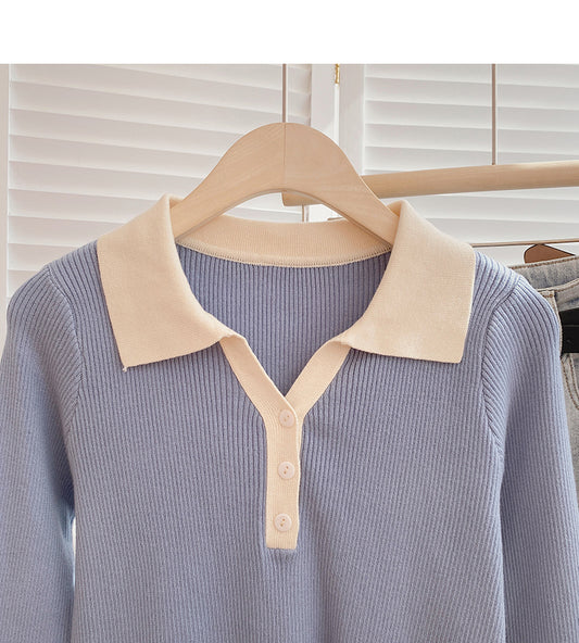 Long sleeve stitching design sense sweater gentle blouse 6499