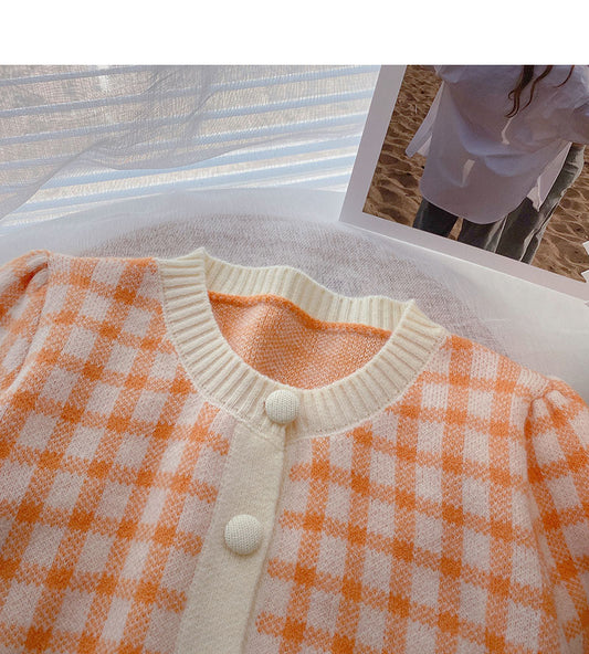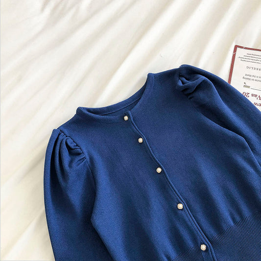 Single breasted bubble sleeve knitted cardigan women's fashion 6498