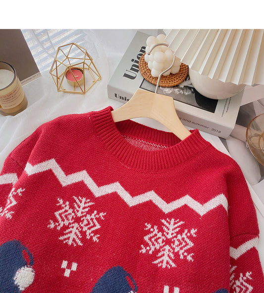Christmas hat jacquard contrast sweater long sleeve Pullover Top 6161