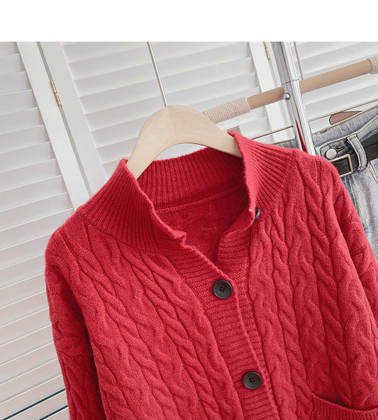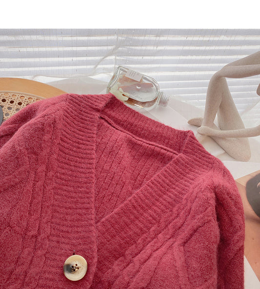 Single breasted Vintage loose V-Neck Sweater Coat 6171