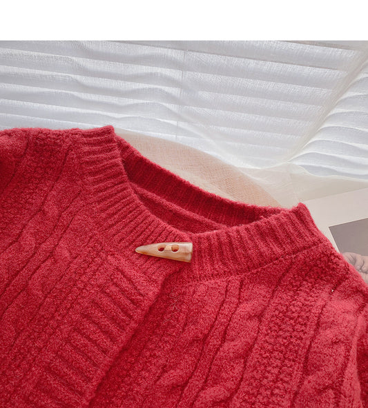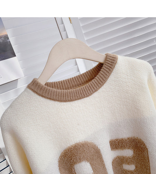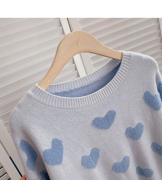 Lazy Wind Love jacquard sweater thin long sleeve top tide 6172