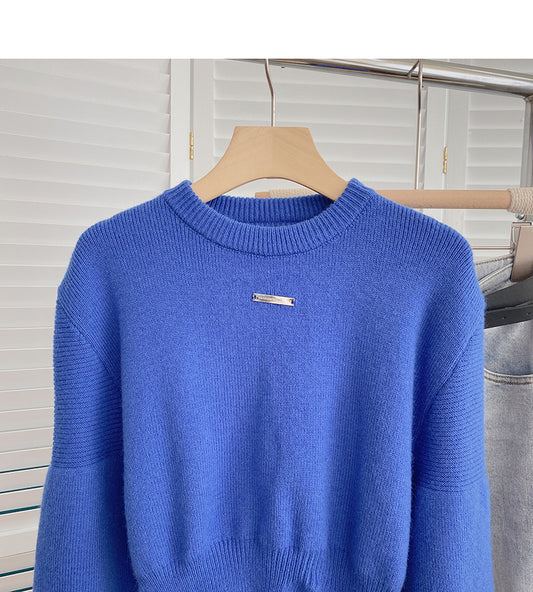 Vintage Lantern Sleeve square neck sweater looks thin and fashionable 6162