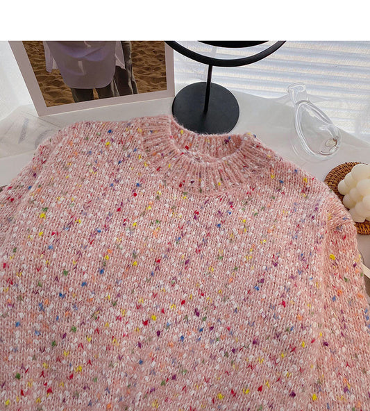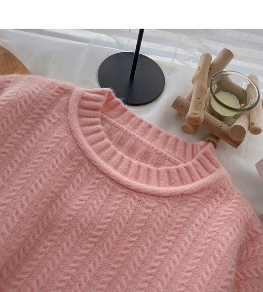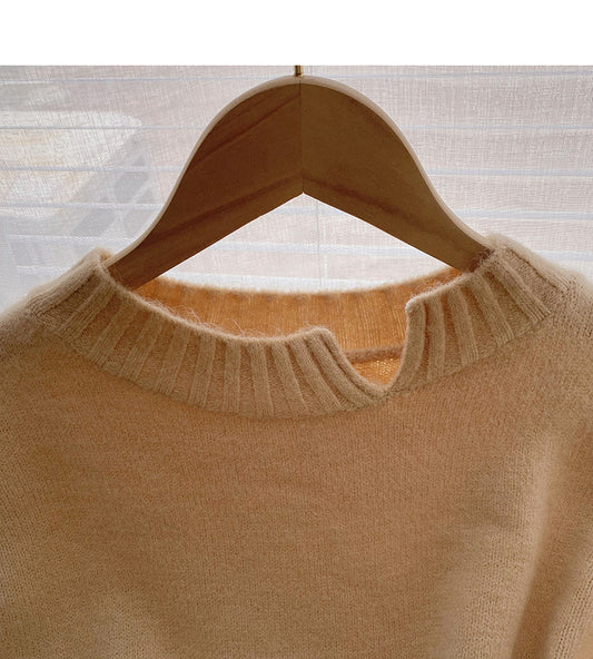 Lace edge stand collar Pullover long sleeve mohair sweater 5973