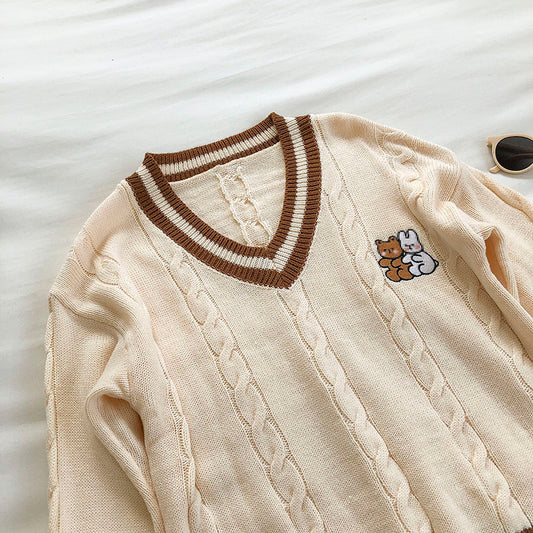 Korean version sweet temperament V-Neck long sleeve sweater 5850