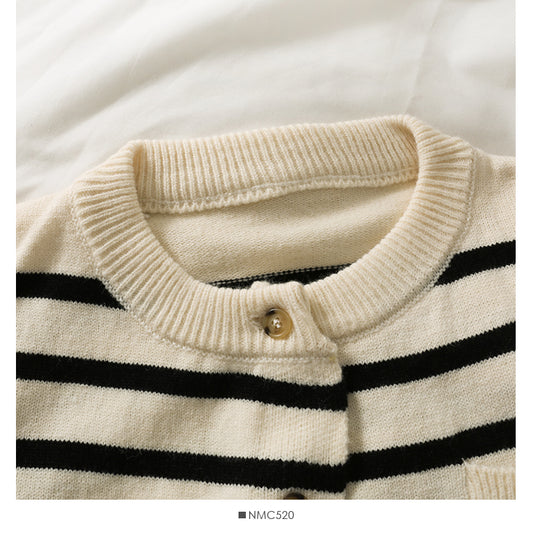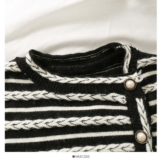 Stripe short loose thin single breasted cardigan women's sweater 2006