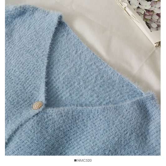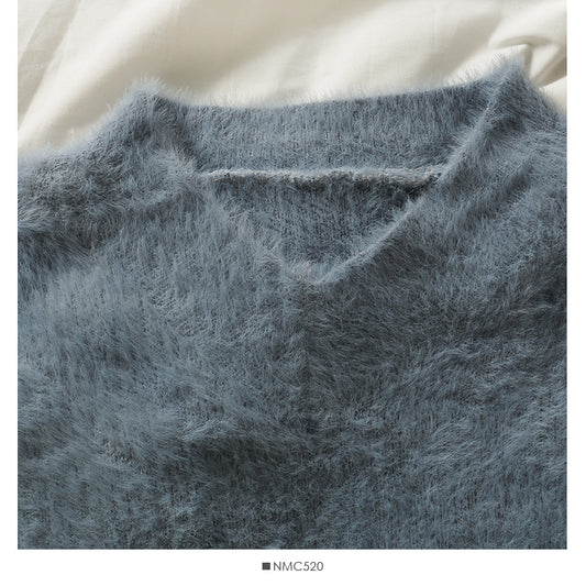 Plush loose thin V-Neck Sweater Korean versatile long sleeve Pullover Top 1995