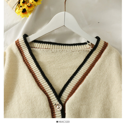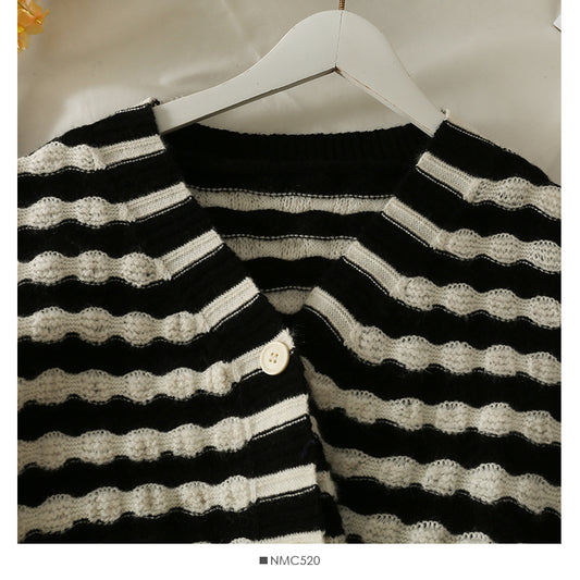 Sweater women's striped single breasted cardigan long sleeved sweater 1982