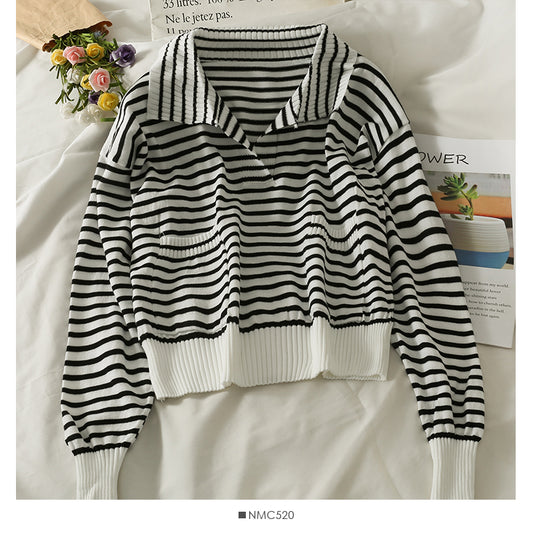 Contrast stitched striped loose skinny cardigan sweate 1974