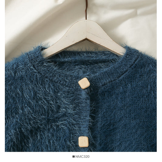 Sweater crew neck single breasted long sleeved top Plush crew neck sweater 1965
