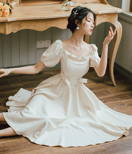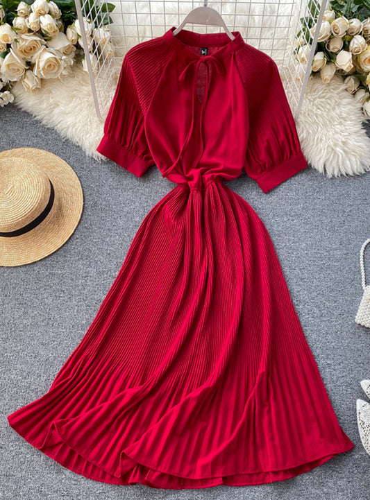 Simple A line pleated dress fashion girl short sleeve dress 1181