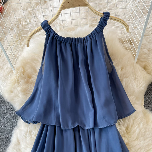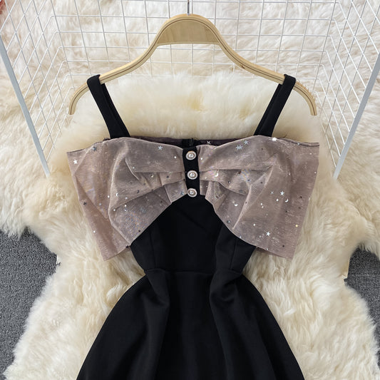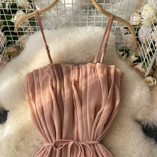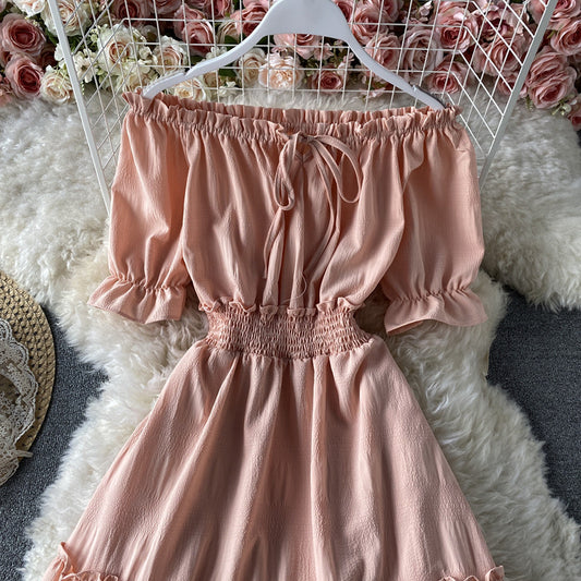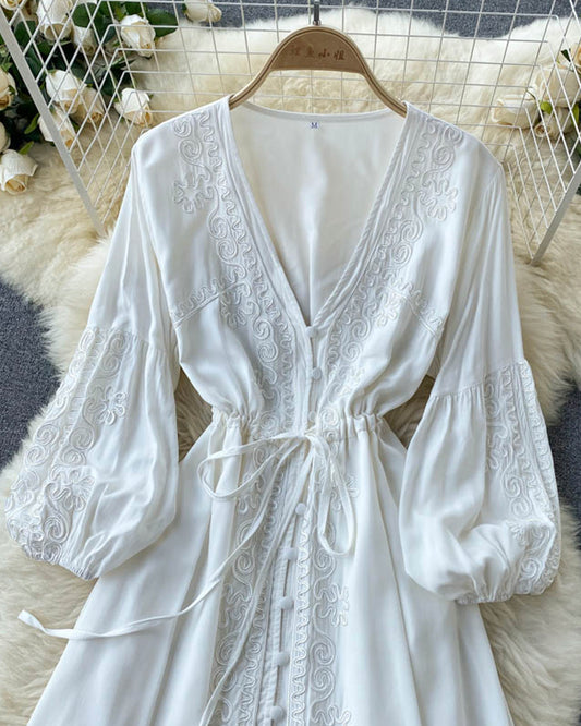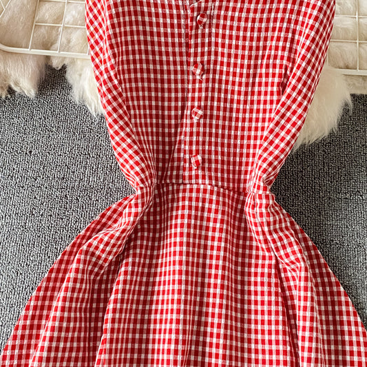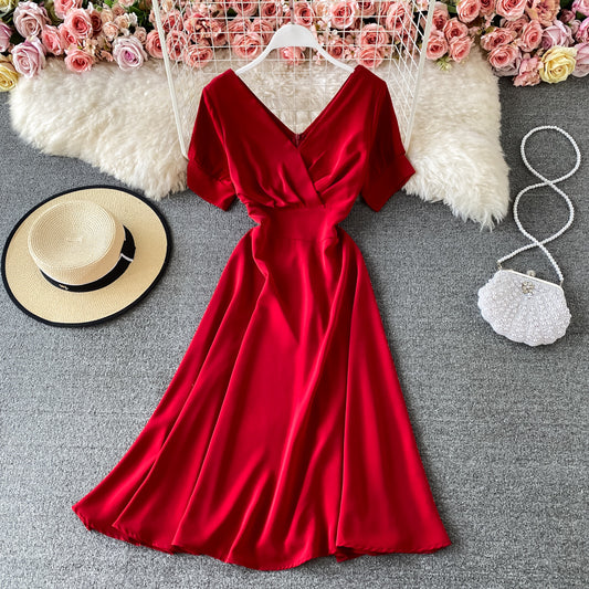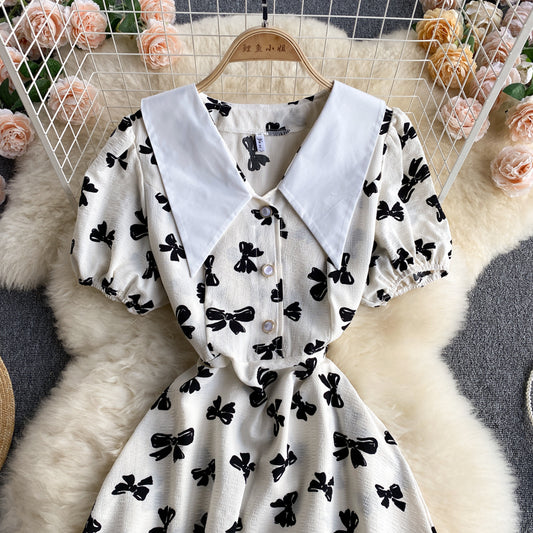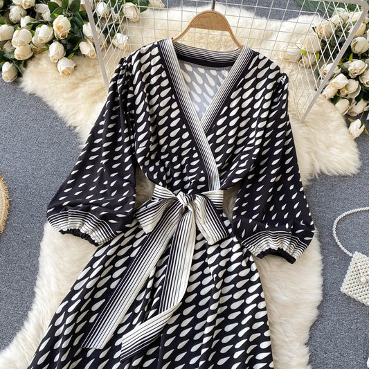 New gradient color polka dot temperament mid-sleeve lace-up waist dress 596