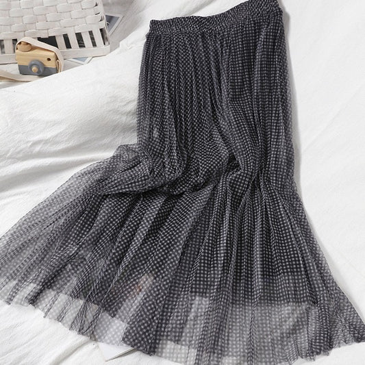 New gauze skirt, plaid print high waist skirt, long pleated skirt 3703